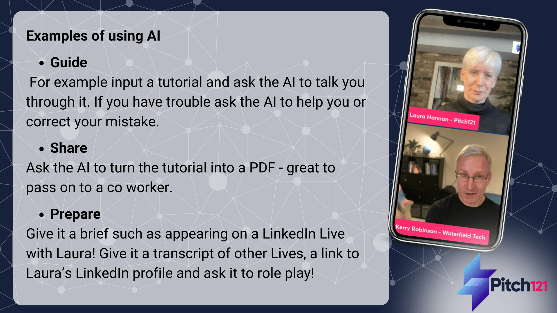 If AI isn’t already part of your daily workflow, it should be. Kerry shared some great pointers on using AI and the current roles in which it excels.